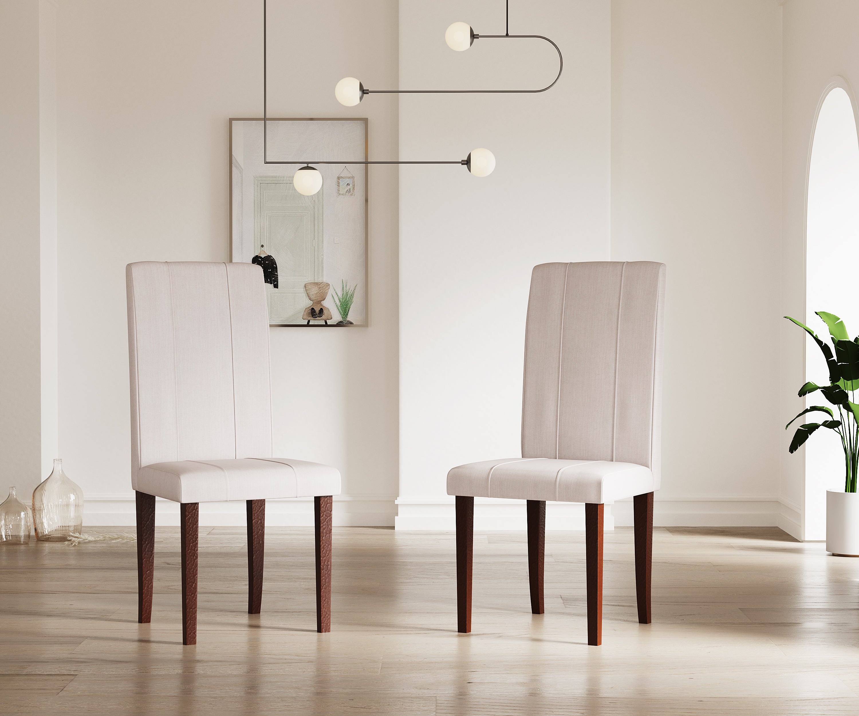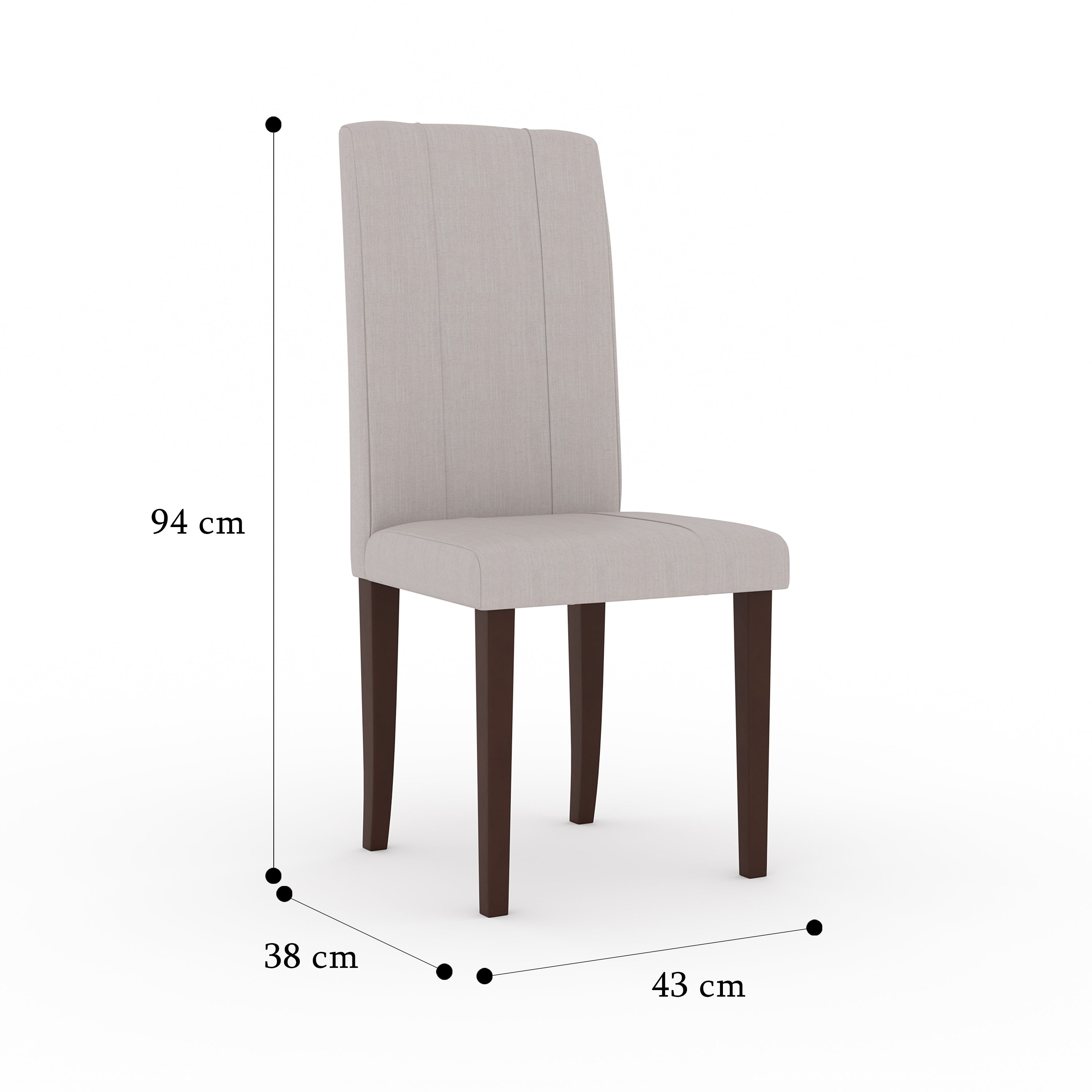 Specs – Rubber Wood Dining Chair with Fully Cushioned Fabric base and back in Walnut color