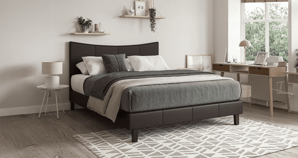 This Estre Jipsta Upholstered bed Frame -- Our contemporary bed comes in a leather or fabric with a stitch detailed headboard and low foot end. With a top curved headboard, this subtle design feature adds an extra dimension to this great bed.