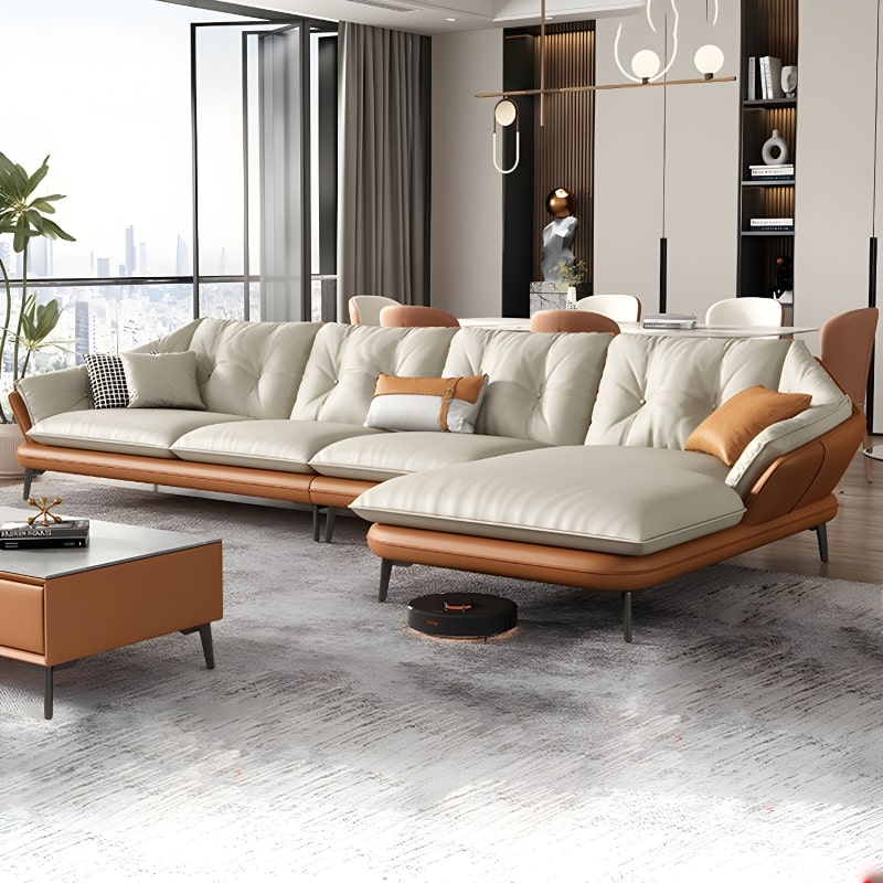 Elevate your living space with the Erba Signature Sofa, a true symbol of contemporary elegance combined with functional trending design. This sofa stands out with its sleek patterns and high legs, specifically crafted to accommodate a robotic vacuum cleaner. The Erba is not just a piece of furniture; it's a blend of style, comfort, and practicality, ideal for the modern home that values both aesthetics and convenience. Perfect for those who desire a multi-color leather stylish sofa that seamlessly adapts to any interior design.