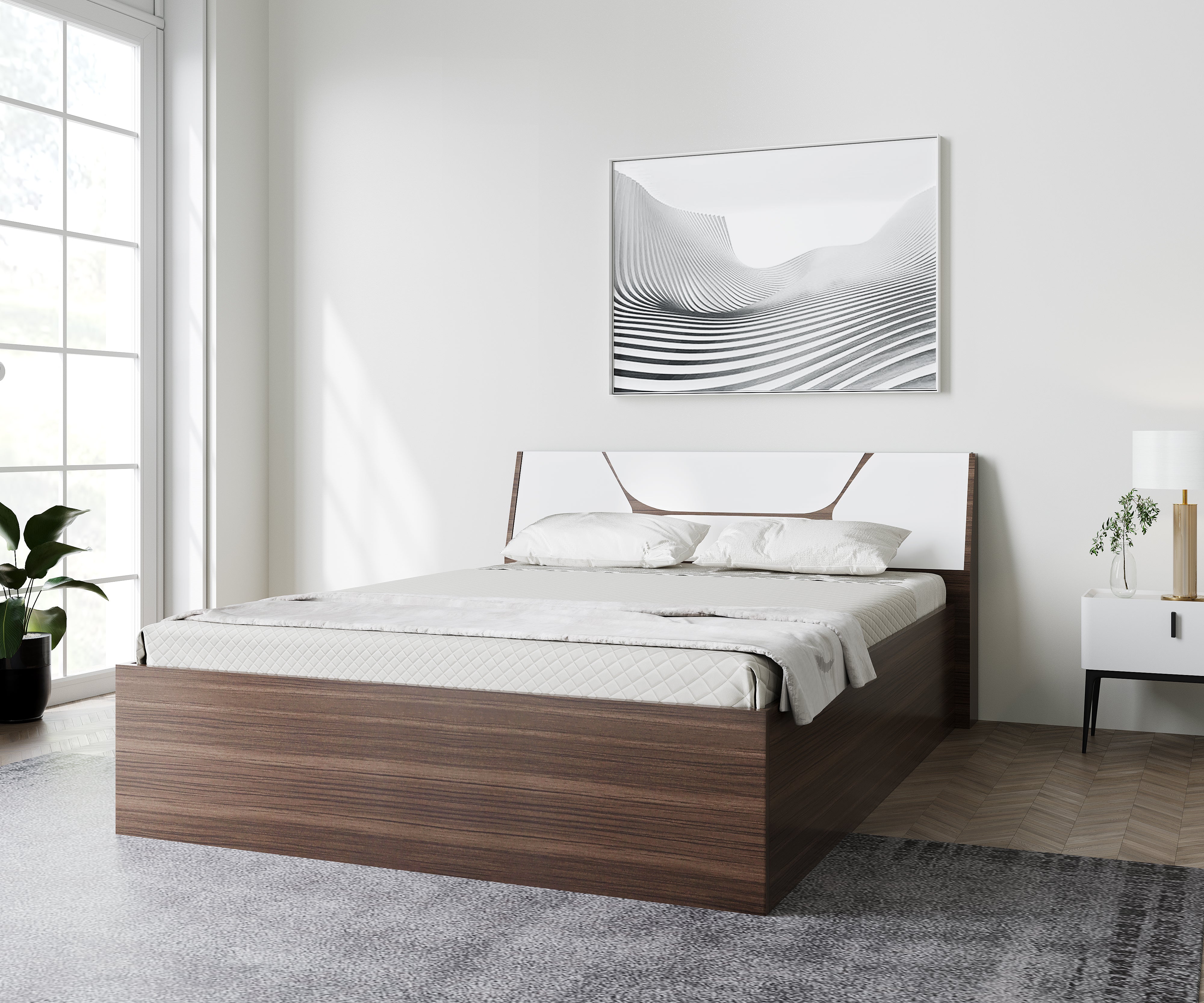 Timeless low lying bed for modern homes. Cracus solid wood bed in reddish brown is an excellent colour to highlight the contemporary decor of your bedroom. The simplicity of design coupled with the high functionality makes it a perfect fit for urban spaces. The design makes it ideal for spaces such as guest room.