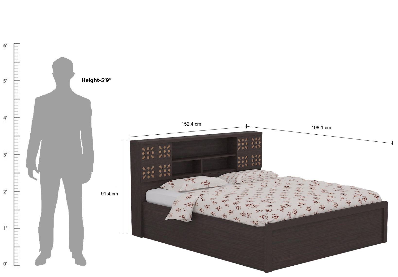 | The Bed has a fine finish that ensures no rough ends to the Wooden Bed Design. Storage Availability: Box Storage Bed Features a spacious box storage for storing clothes, toys, Manchester etc… Half Hydraulic lift for quick lifting and easy access to storage compartments under-the-bed Provides adequate support; load bearing capacity of 300 kgs Humidity-resistant design to ensure strength throughout changing seasons |
