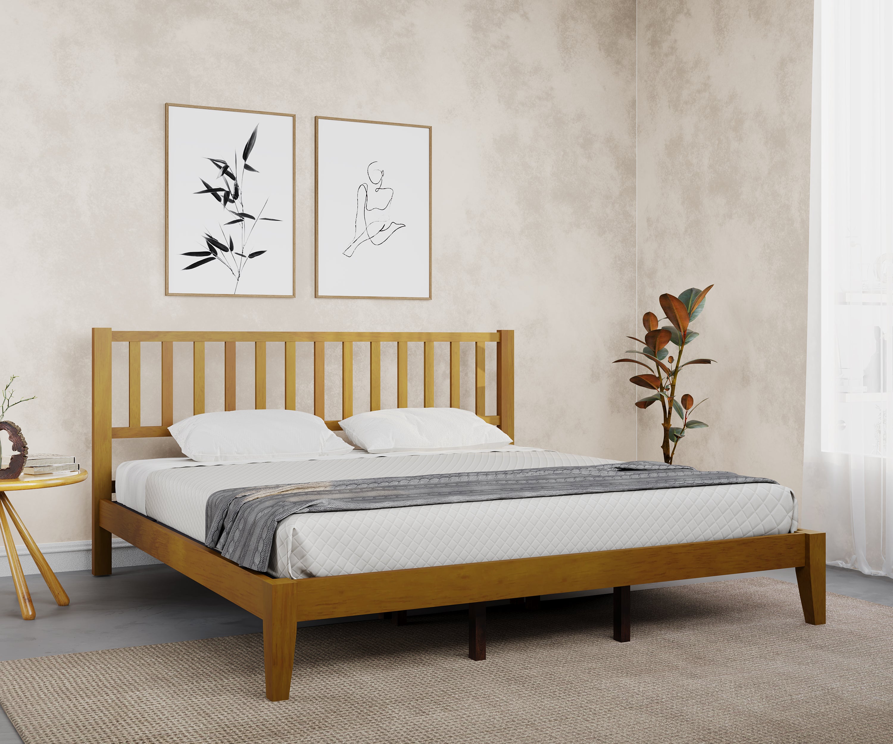 Timeless low lying bed for modern homes. Hypericum solid wood bed in reddish brown is an excellent colour to highlight the contemporary decor of your bedroom. The simplicity of design coupled with the high functionality makes it a perfect fit for urban spaces. The design makes it ideal for spaces such as guest room.