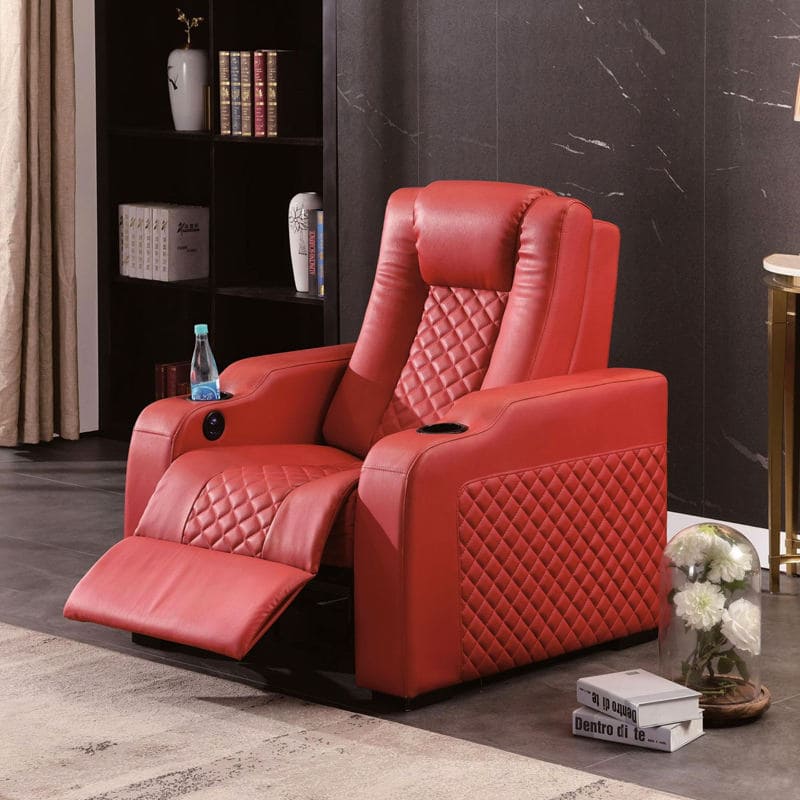 Upgrade your home entertainment with the Krestina Home Theater Recliner, where design meets functionality, offering you a personalized luxury cinema experience in the comfort of your home.