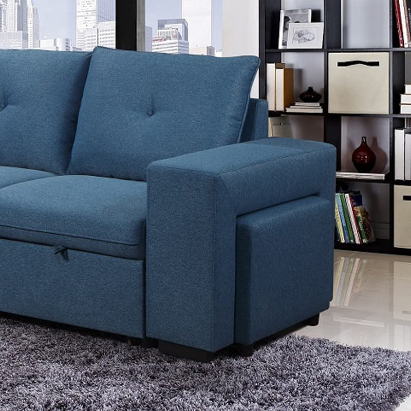 The Estre Zaxxy is a versatile sofa cum bed with storage, thoughtfully designed to help you make the most of your space. With customised features like lift-up storage chaise, broad armrest with ottoman, and a pull-out bed, this smart L shape sofa cum bed transitions effortlessly from day to night.
